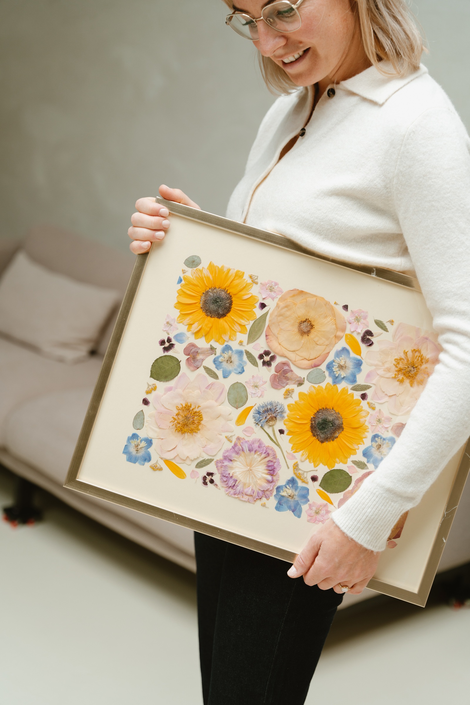 Sommige momenten wil je het liefst voor altijd vasthouden. De bloemen die bij die herinnering horen, van een bruiloft, afscheid, geboorte of ander bijzonder moment, worden met liefde en zorg voor jou gedroogd, geperst en ingelijst.